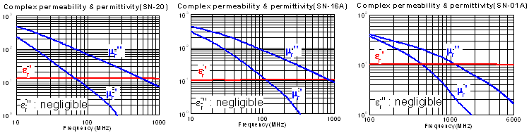 Relative loss factor tanδ/μiac x10-6 25 (0.1㎒) 25 (0.1㎒) 52 (1.0㎒)